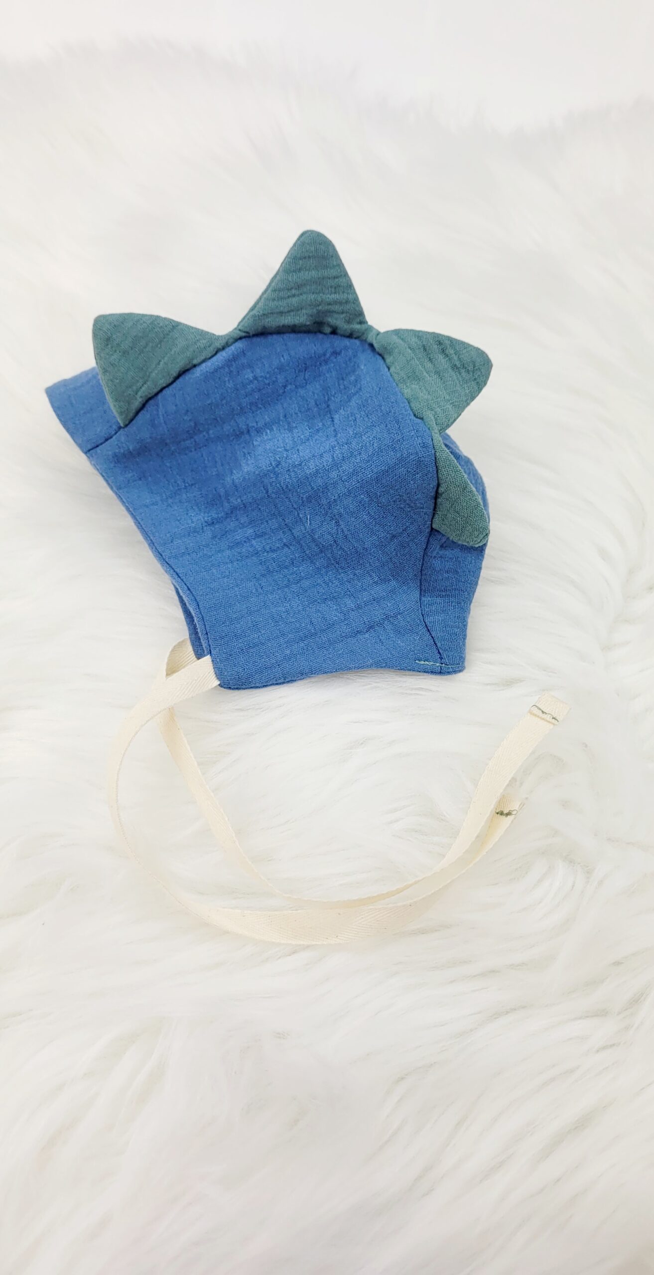 Musliini kankaasta tehty vauvan bonnet.