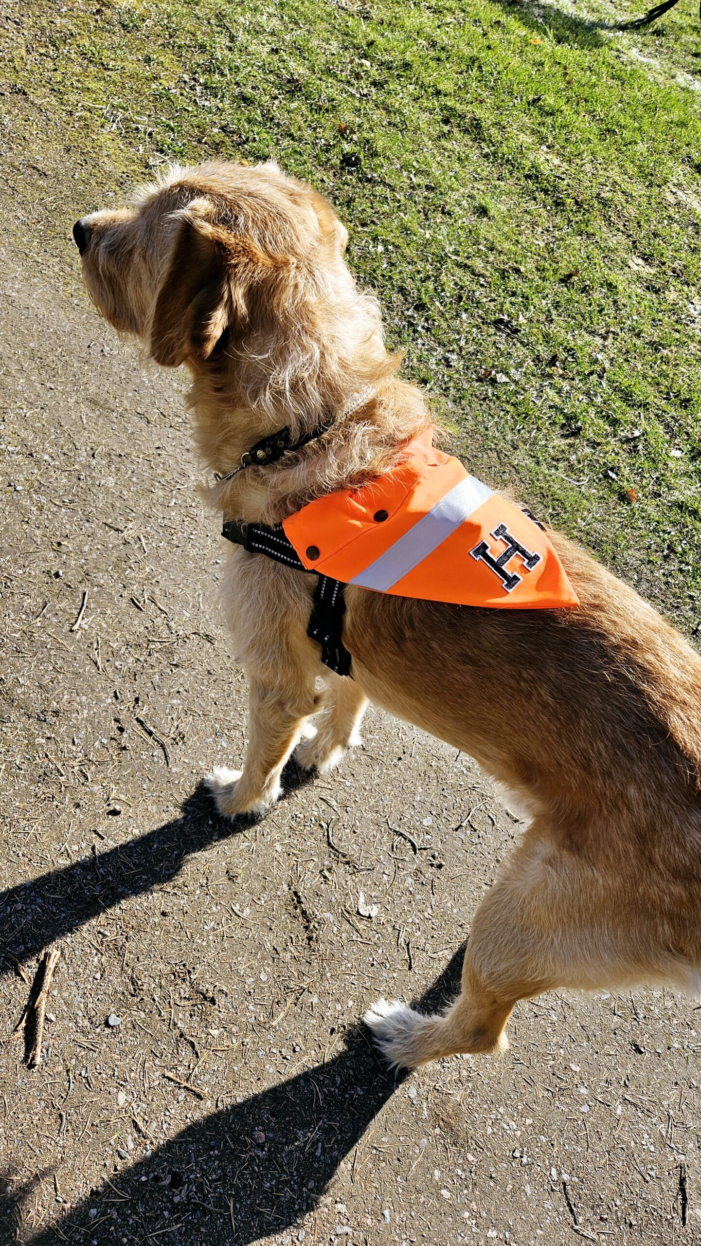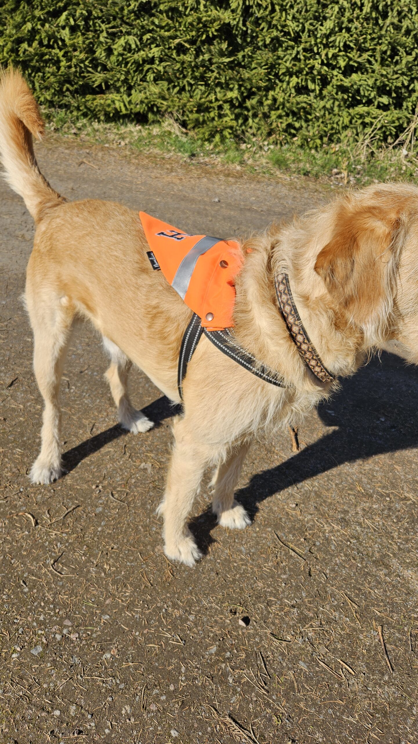 Huivi on helppo napsautella irti ja vaihtaa toiseen pantaan tai vaikka valjaisiin tarvittaessa.