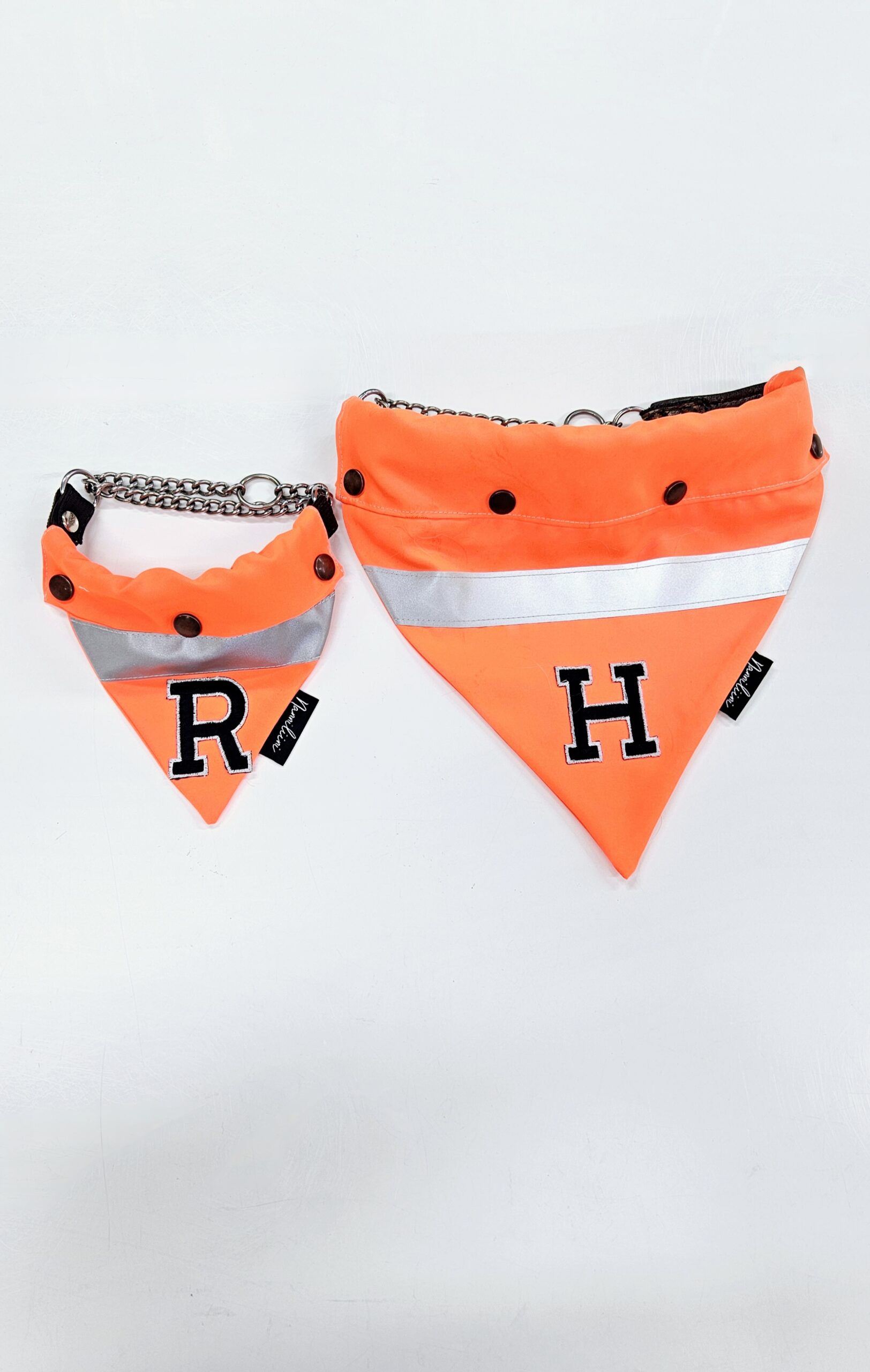Halutessasi esim. Koirasi ensimmäisen kirjaimen, voi sen kirjoittaa kassalla viestikenttään ja lisäämme sen huiviin(muussa tapauksessa jätämme kirjaimen laittamatta. Ääkkösiä valitettavasti ei valikoimaan kuulu..ainakaan vielä =)