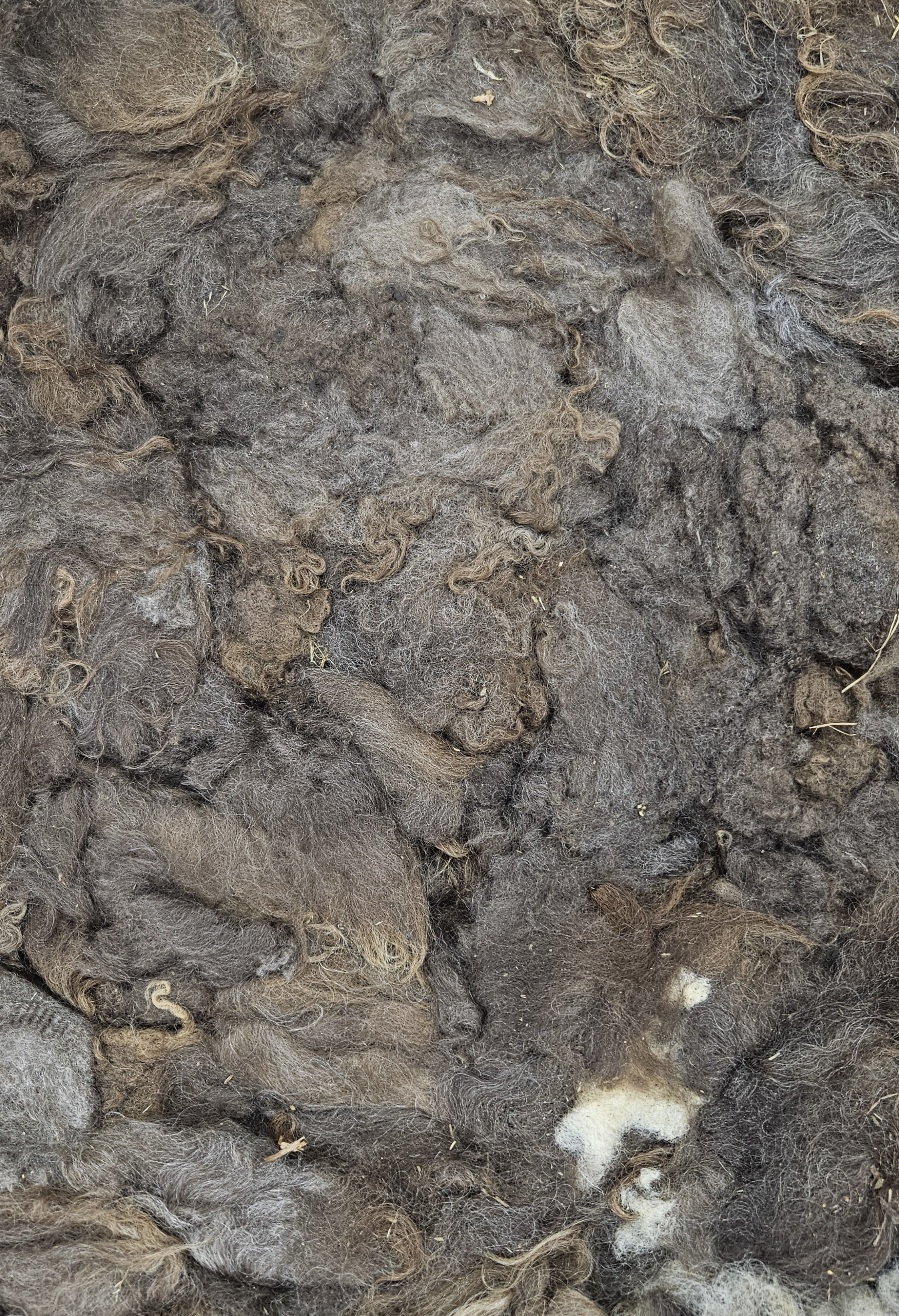 Ruskea raakavilla joka on täysin käsittelemätöntä, vain suurimmat roskat nypitty pois.