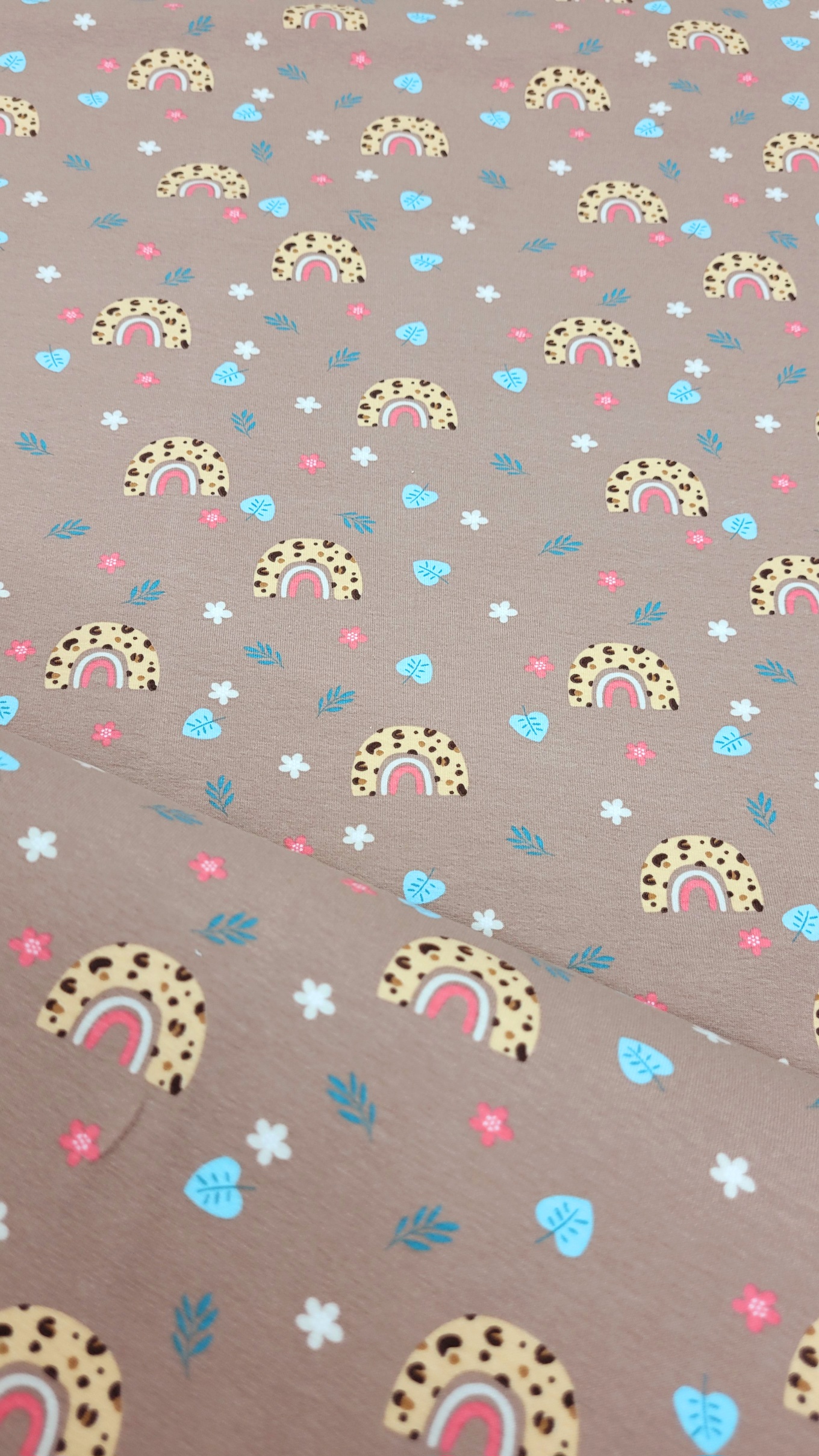 Trikoo, 95% puuvillaa, 5% elastaania. Leveys n. 150cm. 200 g/m2.