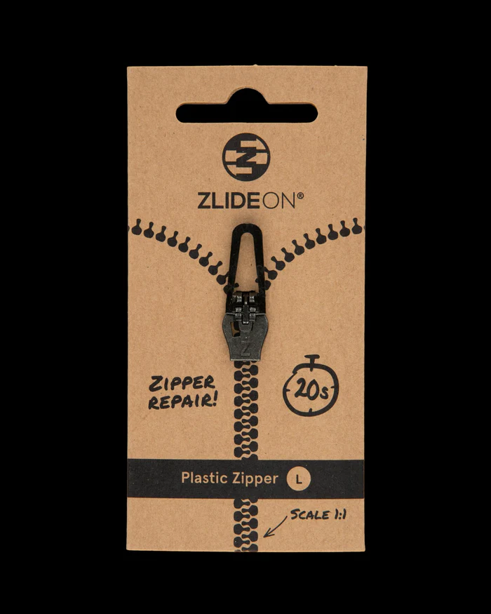 ZlideOn-vaihtolukko on patentoitu ruotsalainen keksintö. Vaihtolukko on nopea ja helppo asentaa vetoketjuun. Tuotekortin takana ohjeet vaihtamiseen: 1. Aloita katkaisemalla vanha lukko kuvan mukaan (jos se on vielä kiinni vetoketjussa). 2. Avaa ZlideOn-vaihtolukko pitämällä sen alaosasta kiinni ja painamalla vedintä ylöspäin, kunnes se napsahtaa auki. 3. Aseta vaihtolukko vetoketjulle ja paina vedintä alaspäin, kunnes se napsahtaa kiinni. Valmis! Skannaamalla QR-koodin pääset katsomaan tuotevideon.
